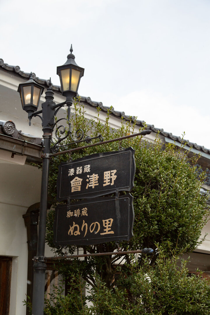 正面が「漆器蔵 会津野」の入り口で、左側に「珈琲蔵ぬりの里」がある