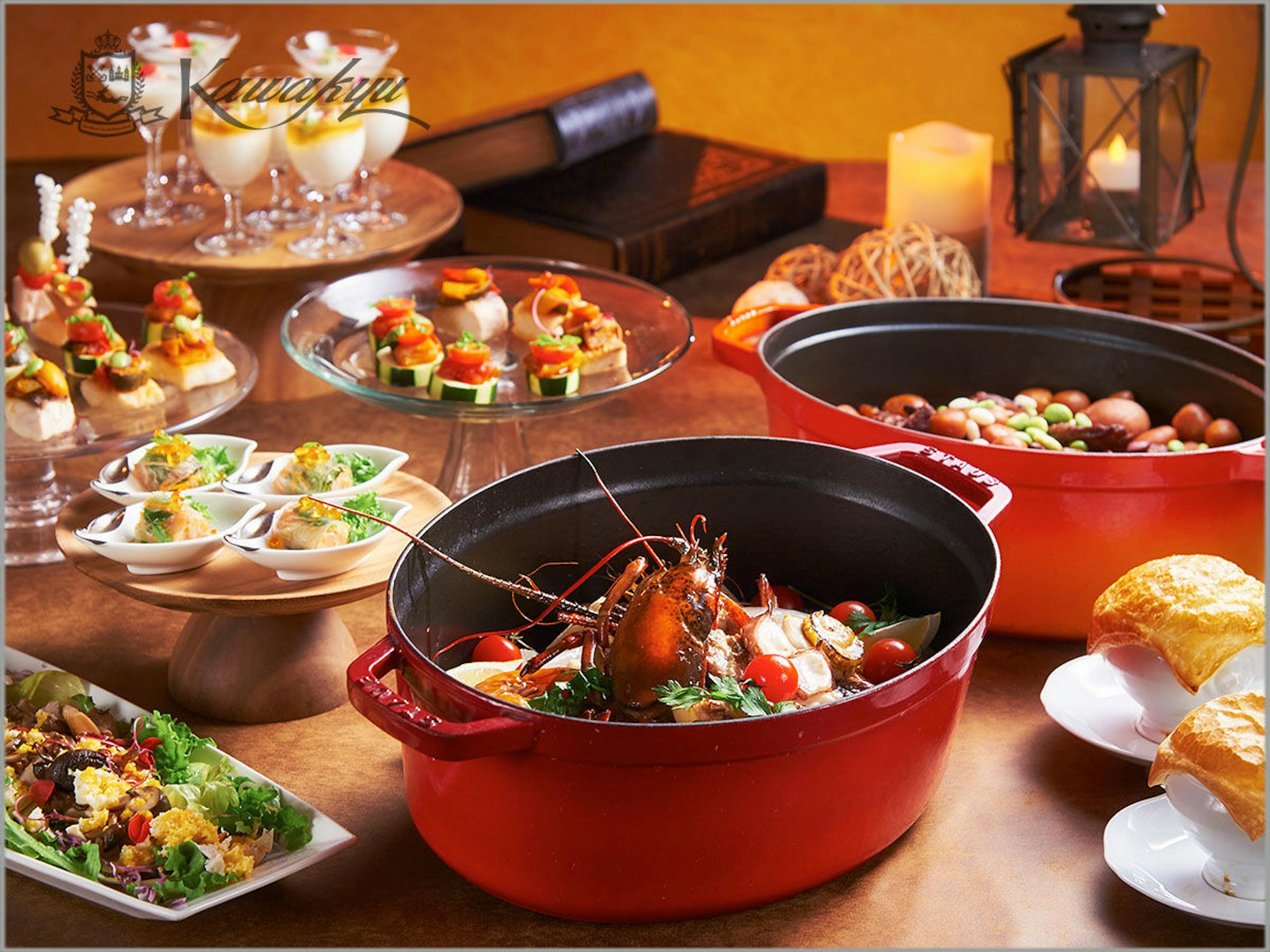 そして“世界一”と称されたフランス料理界の重鎮、ベルナール・ロワゾー氏の朝食メニュー。 フランス産小麦とバターを使用し生地を何層にも折り重ねたサクサクのクロワッサンをはじめとした焼きたての自家製パンと、果物そのままの食感と味を提供する手作りのコンフィチュール(ジャム)を香り高いコーヒーと共にいただけます。更に、卵料理にリ・オーレと生ハムそしてフルーツ各種等など他では味わえない本場の味わいです。