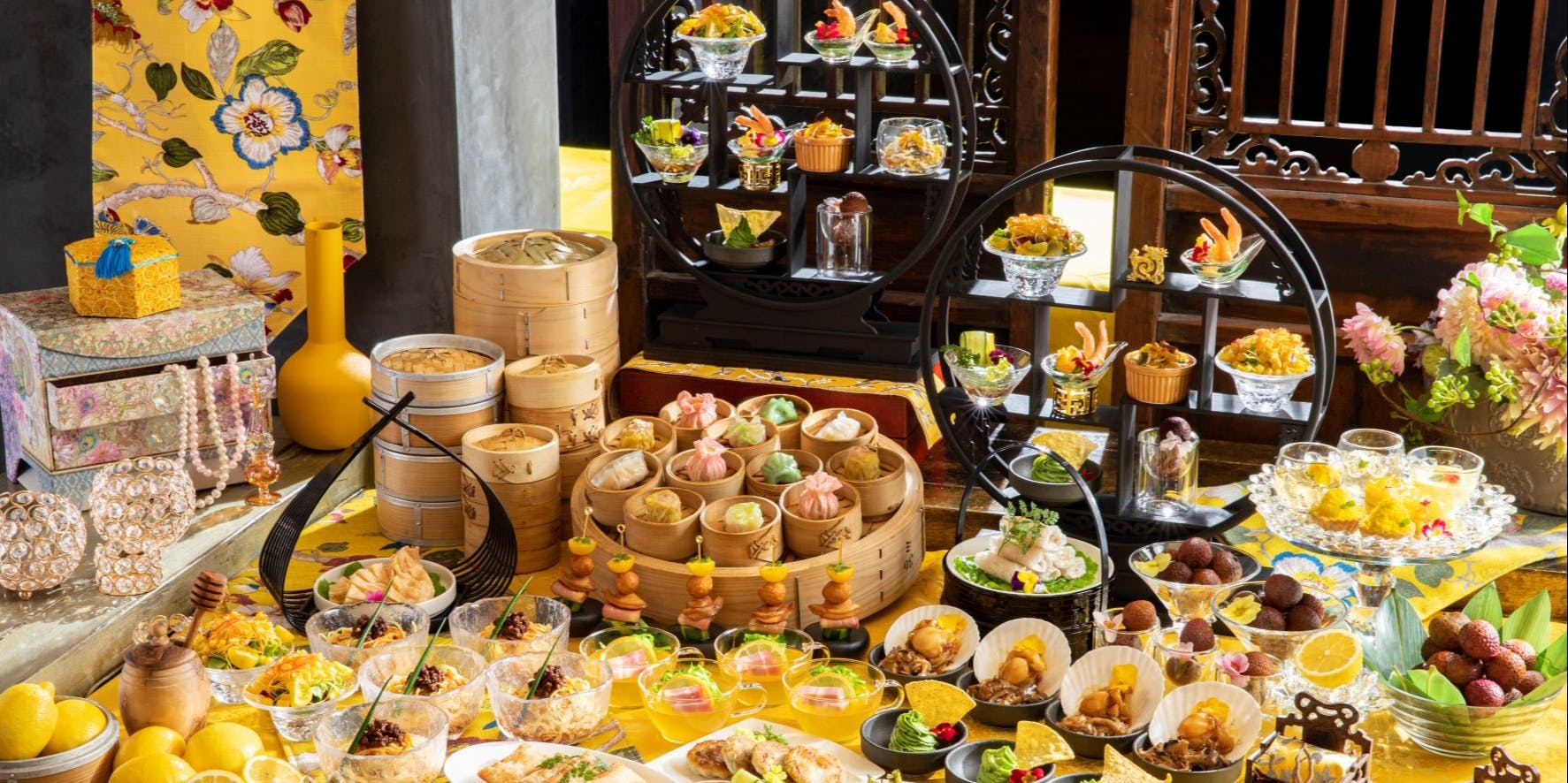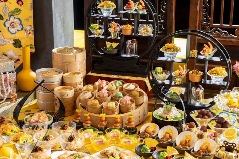 チャイニーズアフタヌーンティー「シノワ・ジョーヌ」は、10種の点心が食べ放題。テーマカラーの黄色をイメージした「コーン入りサラダ レモンクリームドレッシング」や「キャベツとベーコンのレモン風味スープ」などの10種のシェフズスペシャルと4種の特製デザートプレートは、1皿ずつの提供で楽しめます。