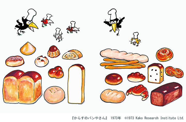 また、日本の子どもたちのために、日本文化に馴染みの深い“だるま”を主人公にした人気シリーズ「だるまちゃん」や、働き者のからすの夫婦と4羽の子どもたちを描いた、かこ作品の中で一番人気の『からすのパンやさん』など、世代を超えて愛され続ける代表作から名場面を選りすぐって、誕生秘話とともに紹介します。