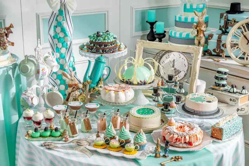 西新宿駅より徒歩2分。「ヒルトン東京」を代表するビュッフェレストラン「マーブルラウンジ」では5月27日(金)~8月31日(水)、アリスの世界観を楽しむ夏スイーツ&ランチビュッフェ「アリスのペパーミント気分なお茶会」を開催中。