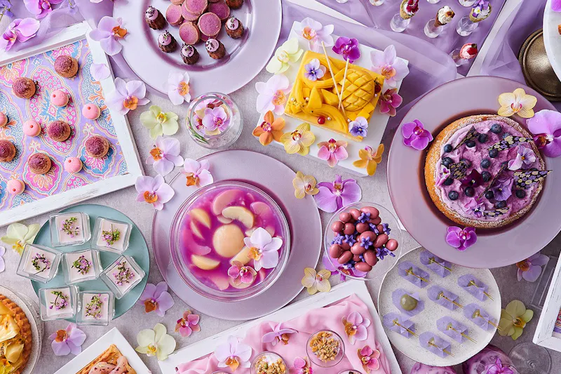 ラベンダーカラーに彩られた蘭とスイーツたちのコラボレーションはまさにエキゾチック。蘭の迫力あるフラワーアーチから始まるエキゾチックスイーツガーデンでは、1000輪以上の蘭に包まれた贅沢でフォトジェニックなスイーツブッフェを楽しめます。