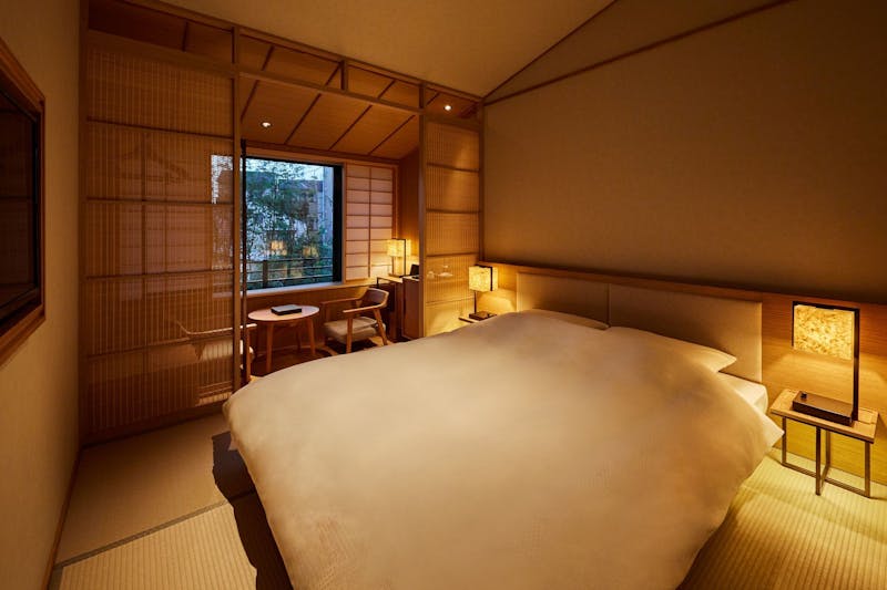 客室は19~32平方メートルの7タイプ35室。土間で靴を脱いで上がった先には板間と畳間が広がります。日本らしい空間をモダンに表現することで「現代の旅館」デザインとして表現しています。