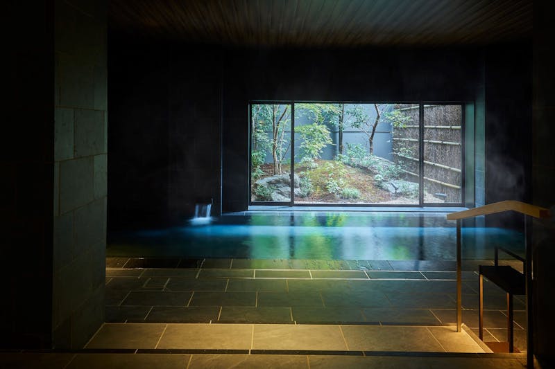 箱根・芦ノ湖温泉の源泉から運ぶ露天風呂は、肌に良いアルカリ性単純温泉。女湯にはオリジナルアロマのミストサウナを、男湯にはドライサウナを併設し、専用庭を臨む内湯では時間の移ろいにそった音景がくつろぎの湯浴みを演出しています。