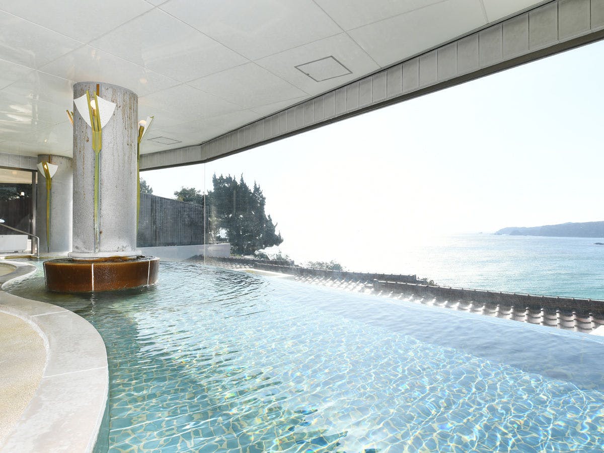 さらに、温泉もすべてがオーシャンビュー。大浴場・露天風呂・貸切温泉露天風呂、いずれも海を眺めながら入浴することができます。 洋風大浴場「ウェイブ」は多々戸の白い砂浜と美しく澄んだ海をモチーフに、白い床と、水色の浴槽で造られた内湯。まるで砂浜に寝転んでいるかのような感覚を味わって。