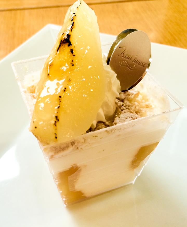 洋梨のクリームに包まれたりんごのソテーがとっても爽やか♪「洋梨とりんごのヴェリエール」(432円)