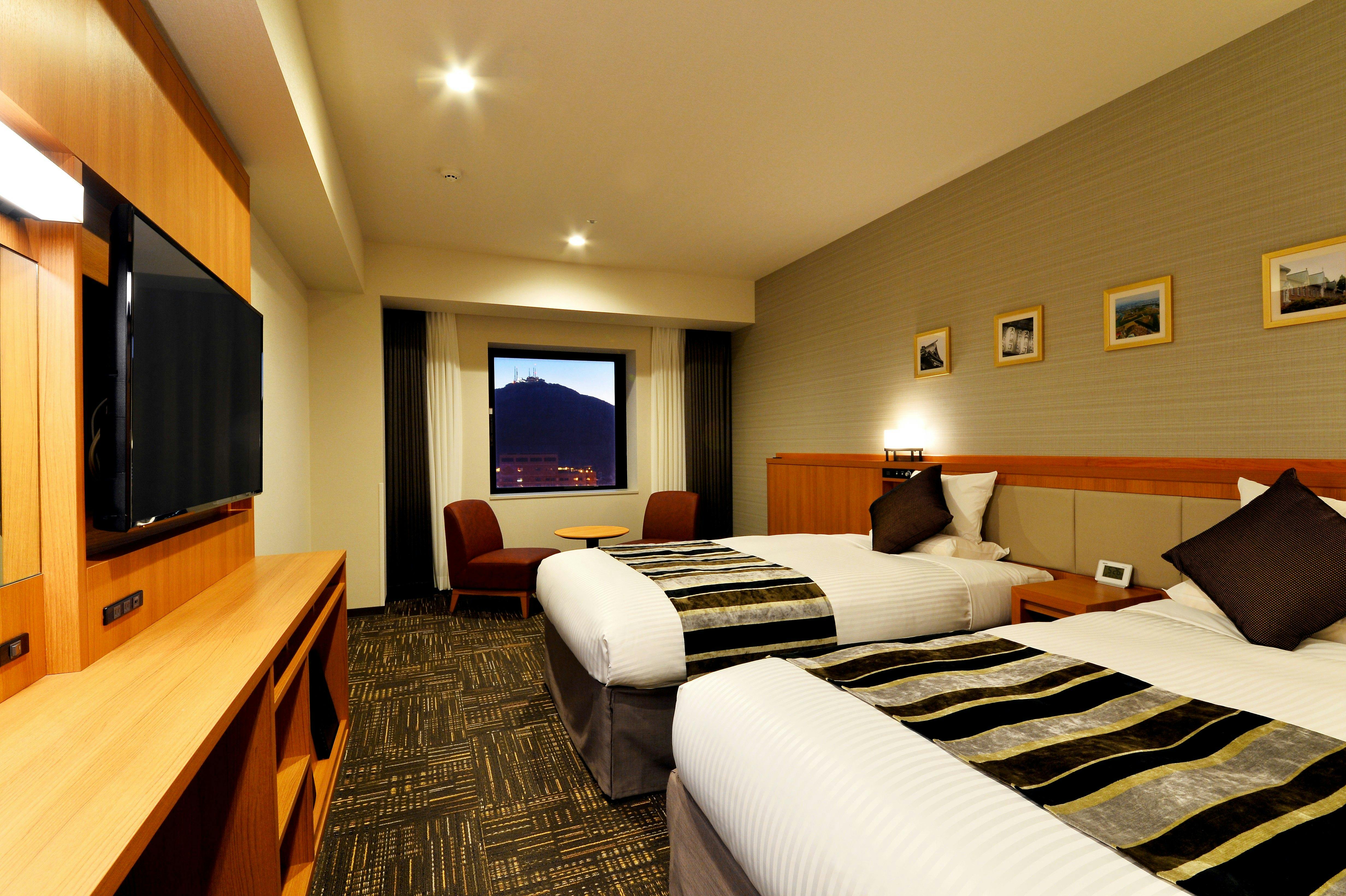 本館最上階には天然温泉展望大浴場がオープン。舐めるとしょっぱい塩化物強塩温泉は、体をあたため疲労回復を促進します。函館の街や函館湾を眺めながら、旅の疲れを癒すことができます。客室は、琉球畳を使用した和モダンなプレミアムジャパニーズツインや、180cm幅ベッドを設置したプレミアムキングなど、多様なニーズに対応しています。