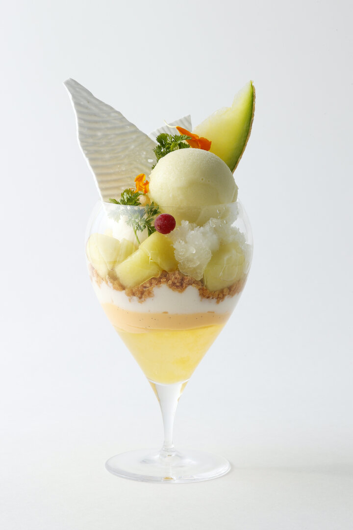 エンポリオ アルマーニ カフェ「メロン モスカートダスティ アーモンドミルクのパフェ」