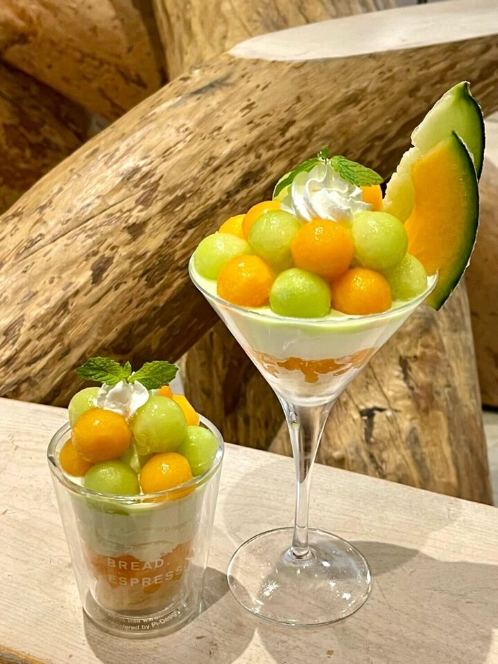 MIYASHITA PARKの「パンとエスプレッソとまちあわせ」では、「季節のパフェ〜ダブルメロン〜」「ミニパフェ〜季節のダブルメロン〜」が登場します。 果肉感を感じられる赤肉メロンと、とろけるような甘みと芳醇な香りが特徴の青肉メロンをたっぷりトッピング、間には爽やかなメロンアイス、メロンジュレ、メロンの甘さを引き立てるチーズクリームを重ねた贅沢な一品です。 このほか、看板商品「たまごとミルクとまちあわせ」のメロンフレーバー「メロンとミルクとまちあわせ」や、2種類のメロンシロップを使用したカクテルのような優しい甘味の「メロンクリームソーダ」、「季節のメロンプレート」もそろいます。