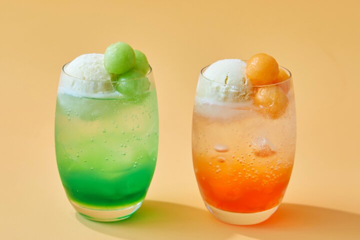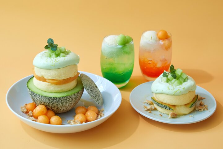 「クリームソーダ ミドリ」は、ほんのりレモンの酸味を効かせたメロン風味のクリームソーダにタカミメロンの果肉をトッピングしています。 「クリームソーダ オレンジ」は、北海道のメロンシロップを贅沢に使用したクリームソーダにクインシーメロンの果肉をトッピングしています。 * * * 各商品の詳細は、公式サイトをご覧ください。 国産メロンをまるごと一つ使用した日本最大級の贅沢すぎるスフレパンケーキを、この機会にぜひ味わってくださいね。