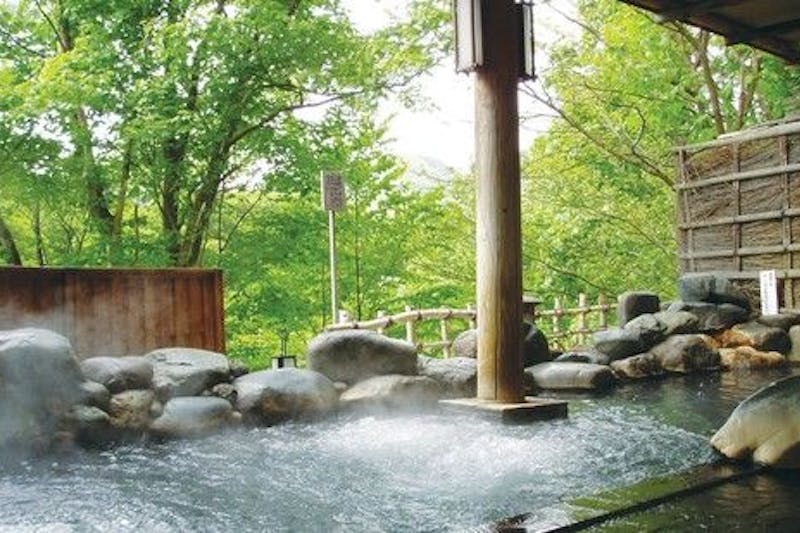 お風呂は約75度の源泉掛け流し。 源泉ならではの豊かな効能となめらかな肌触りにゆったりと浸かれば、湯のやさしさと安らぎが心と体に染み渡ります。 一面に広がる紅葉に、真っ白な雪景色など、露天風呂から眺める山々や渓谷も、心癒すおもてなしです。