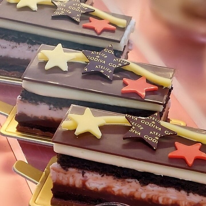 「アトリエ ドゥ ゴディバ」の「ガトーショコラ クレーム ドゥ フランボワーズ 七夕デコラシオン」は、チョコレートビスキュイ、チョコレートガナッシュ、ホワイトチョコレートガナッシュとラズベリームースが織りなす、七夕限定のデコレーションケーキです。