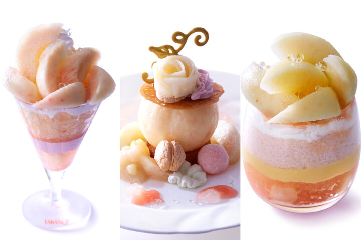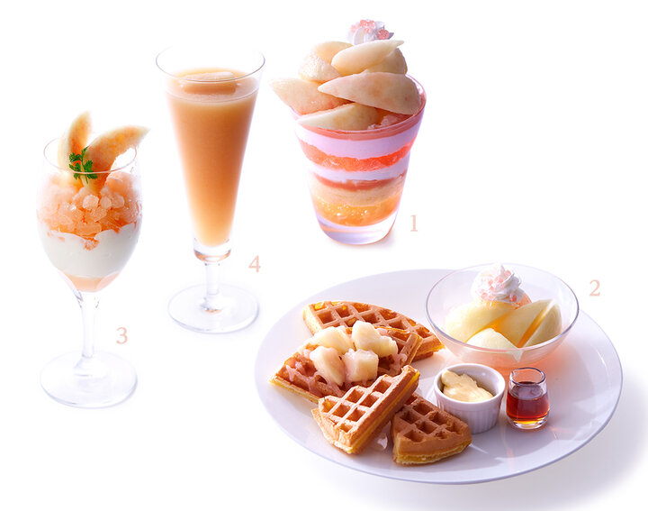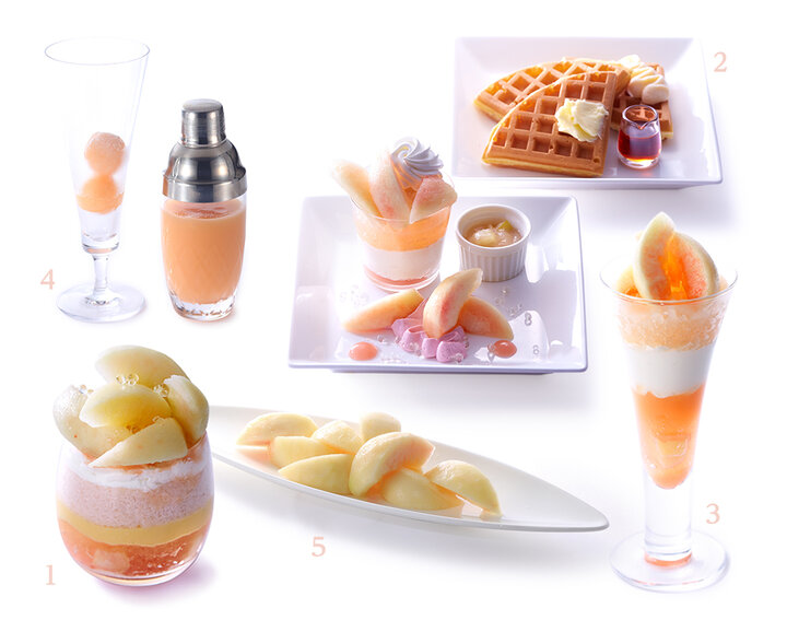 このほか、新宿本店/横浜高島屋店では「1.シーズナルトライフル 桃」「2.桃のワッフル」「3.桃のドリンクデザート」「4.桃のジュース」「5.カットフルーツ 桃」が登場します。