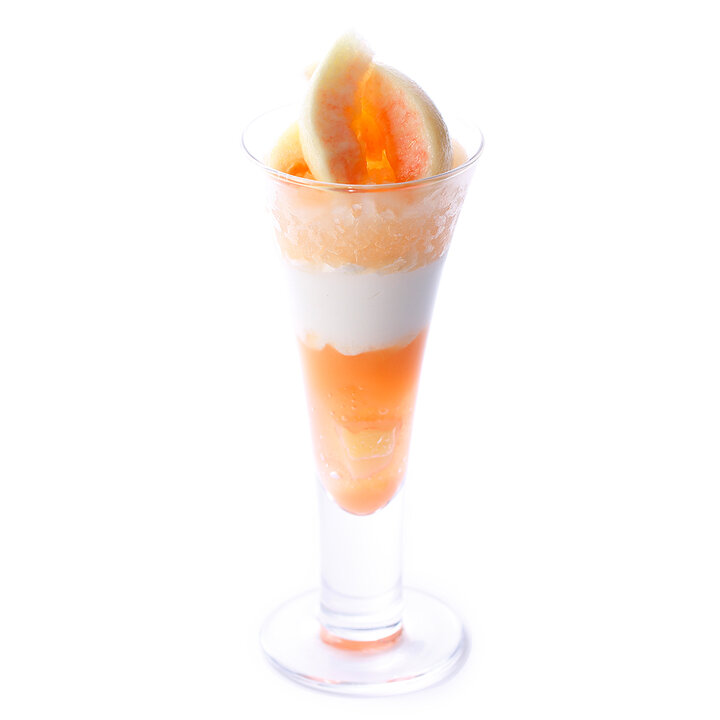 新宿本店/横浜高島屋店の「桃のドリンクデザート」は、桃のやさしい味わいと、ヨーグルトのほどよい酸味の相性が抜群で、さっぱりといただけるデザートです。 グラスにはピーチのソース、ゼリー、ジュース、グラニテとヨーグルトを重ねています。