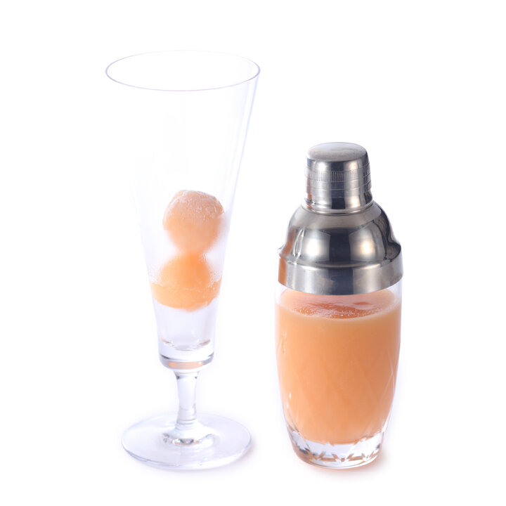 新宿本店/横浜高島屋店の「桃のジュース」は、芳醇でとろけるような舌触りの桃を楽しめるジュースです。 ジュースを凍らせたキューブを浮かべて。