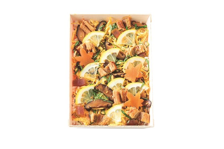 本館地下1階 旨の膳では、米屋の「べっぴんレモンと穴子のちらし寿司」が、伊勢丹新宿店限定で各日10点限り登場します。 酢飯にはレモン酢、ちらし寿司に必須のかんぴょうの代わりに完熟した生レモンを使用しており、レモンの酸味と甘みを楽しめる新感覚の一品です。