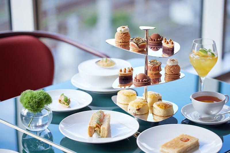 アフタヌーンティーは、おしゃれな「セイボリー」から斬新にスタート。出来立てで一皿ずつ届けられる全6品は、どれも目に美しく楽しい工夫に満ちています。季節のフルーツを使った多彩なスイーツや、ドイツ「ロンネフェルト」社の紅茶を楽しめます。