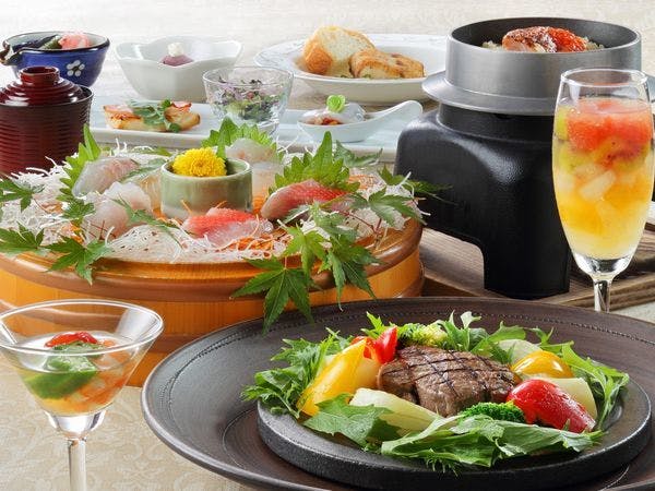 食事は毎朝、地元富戸定置網より直接仕入れる鮮度抜群の地魚お造りや、地元素材を大切にした和洋創作ディナーをいただきましょう。朝食は全室ルームサービスでのんびりとお過ごしくださいね。