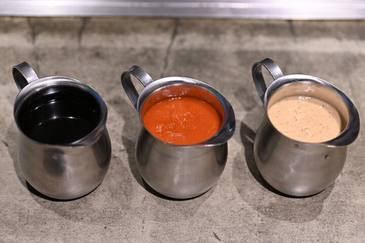 左から「おろし」「ガーリックトマト」「ペッパー」の3種のソース