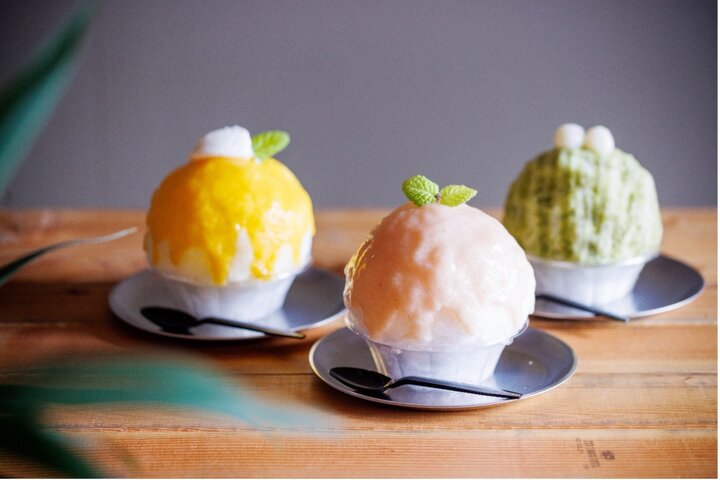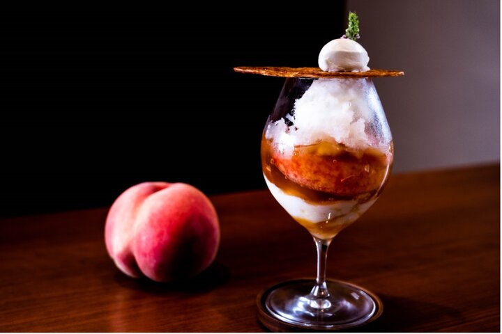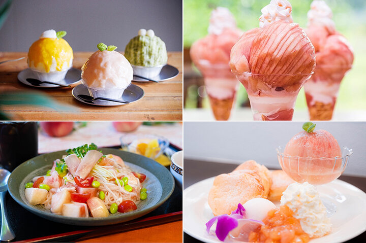 「フルーツファームカトウ」直営のカ フェ「PEACHMAN CAFE」の吟壌ブラン ド桃のかき氷(ピーチマンスペシャル、 抹茶inピーチ、ココゴールデンピーチ)