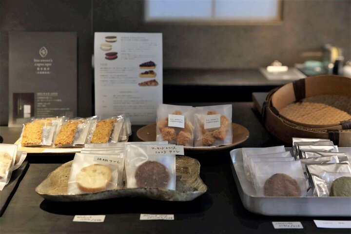お店を営むのは、バイタリティあふれる石橋香織さん。20代の頃、アパレルやデザイン関連の会社勤務を経て、一年間インド、パキスタンなどアジア4か国放浪の旅へ。少数民族の村でしばらく滞在した時に、「電気も水もなく、すべて自給自足。質素だけれど、常に歌と笑顔があって。村の人々の暮らしを目の当たりにして、本当の豊かさとは何かを考えさせられました」。帰国後も多彩な経験を積んだ後、子育てのため京丹波に移住。「添加物は使わない。やむを得ない場合は、最小限に」の信条のもとお菓子作りをはじめ、試行錯誤を重ねつづけて独自のレシピを生み出していったのだそう。