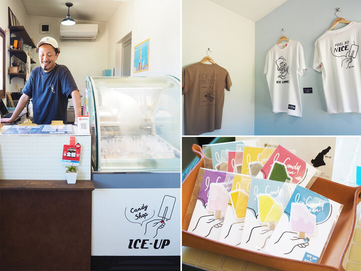 中は明るく、パステル感のある配色が特徴的。かわいらしいイラストや雑貨が目を引き、一歩踏み入れただけで気分が上がります。 ちなみに、お店のアイスキャンディーは、型に一本一本棒を入れて作る手作り。昔ながら製法で手間がかかることもあり、週の前半はアイスキャンディー作りに専念し、週の後半にお店を営業しています。