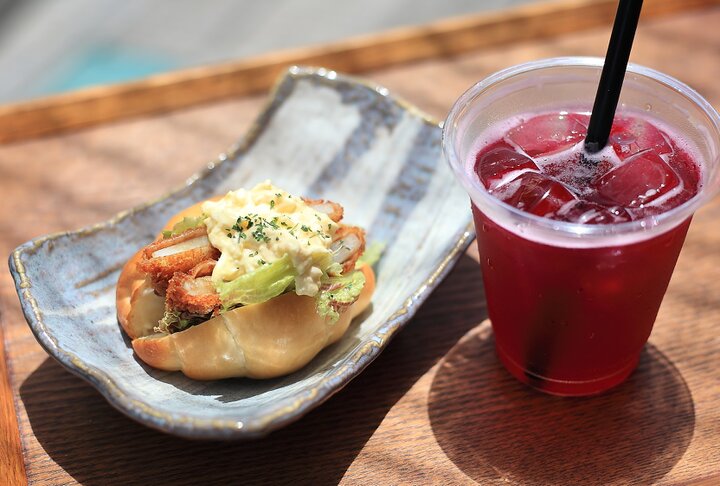 rikanoさんは毎日食べるものこそ体に優しいものをと、パンも自家製しています。巨大な貝柱のようなプリっとした食感が楽しい、島の夏の味覚である平貝をフライにしてタルタルソースと野菜を添えた「平貝サンド」といった総菜パンも。テイクアウトして海を見ながら味わいたい島グルメです。