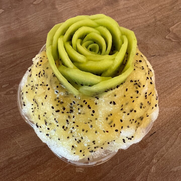 5F イベントテラス、兵庫「にしのみや果汁店」では「花盛りキウイココナッツのかき氷」が8月5日~8月7日の期間登場します。(各日限定30) キウイで作った花びらに、シロップにもキウイを贅沢に使って、見た目も味も大満足。新鮮なフルーツとふわふわの氷が調和した、こだわりの一杯を味わえます。