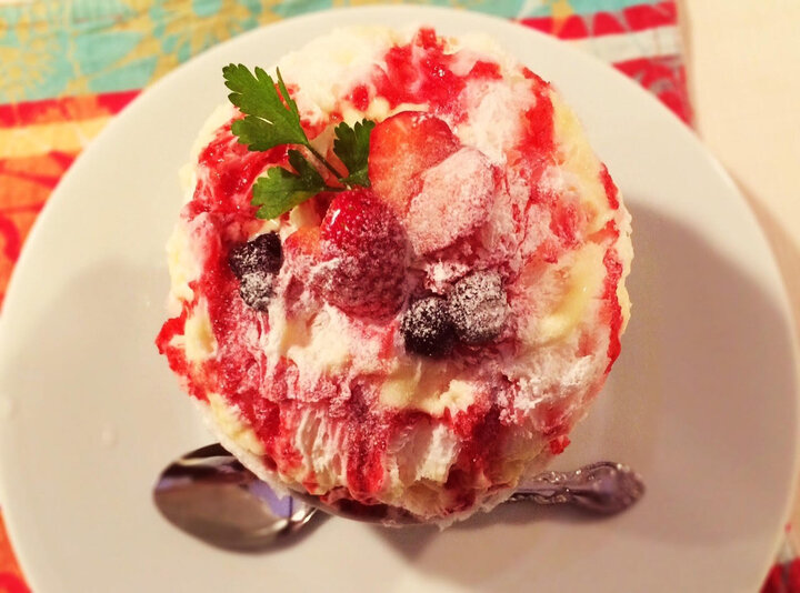 フルーツの花が咲く果汁たっぷりかき氷