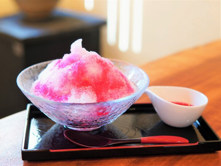 紫蘇のあざやかな赤色が印象的「かき氷 赤紫蘇」(500円)