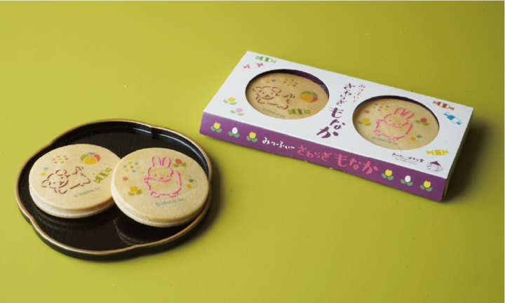 まんまるもなかの「みっふぃーさわらぎもなか」は、パリッと焼いた最中の皮に、爽やかな風味広がる「柚子あん」をはさんだお菓子です。 「置き砂糖」という製菓技法を使って、ぷっくりと浮かび上がらせたミッフィー&スナッフィーのデザインにも注目して。