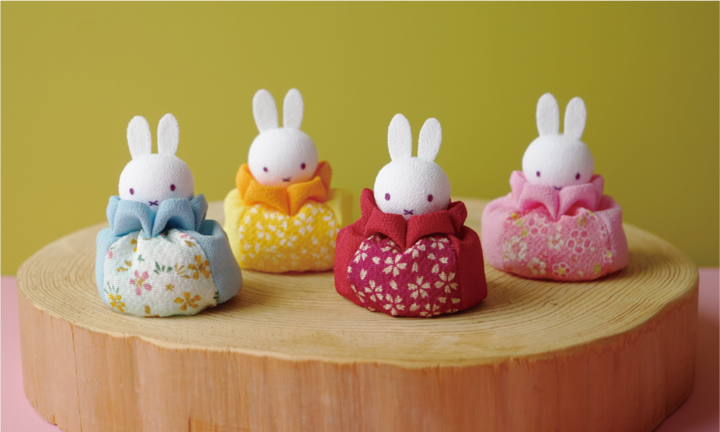 ミッフィーが「お手玉」になって登場。首元はつまみ細工の技法を使用したお花をあしらっています。 インテリア用なので、ぽんぽん投げずに優しく飾ってかわいがってあげてくださいね。