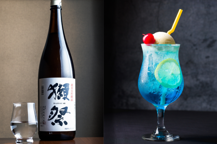 昨今のレトロブームにより人気が急上昇している“クリームソーダ”ですが、店主の「日本酒をもっと気軽に楽しんでほしい」という思いから、これまでにも日本酒を使用したクリームソーダを提供してきました。 今回の「大人の日本酒クリームソーダ」には獺祭を使用し、豪華アップデート。カフェで提供されるようなカラフルな3色のクリームソーダは、それぞれ青りんご、ピンクグレープフルーツ、ブルーキュラソーのシロップで飲みやすく工夫されています。