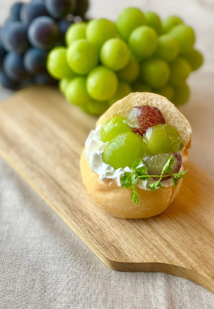 「ぶどうのスイーツバーガー」(土・日曜、祝日限定・数量限定)は、マスカットと旬のぶどうの2種類を使用。 中には巨峰のピューレが入っており、最後まで飽きずにいただけます。