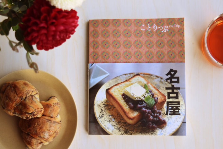 名古屋の表紙はちょっとレトロな雰囲気の幾何学模様。テーマは「昭和ノスタルジーな喫茶」です♪ 実は昔ながらの喫茶店が多く残っている名古屋。そんな喫茶店の壁紙やソファーにありそうな模様をことりっぷ風にオリジナルで作ってみました。 そして帯の写真は金箔がのった小倉トースト。あんこがのったトーストは名古屋名物として有名ですが、さらに名古屋城の金のシャチホコを彷彿とさせる金箔がのった、スペシャルな小倉トーストです。このメニューは名古屋城からほど近い、金シャチ横丁にある「那古野茶屋」でオーダーできますよ。