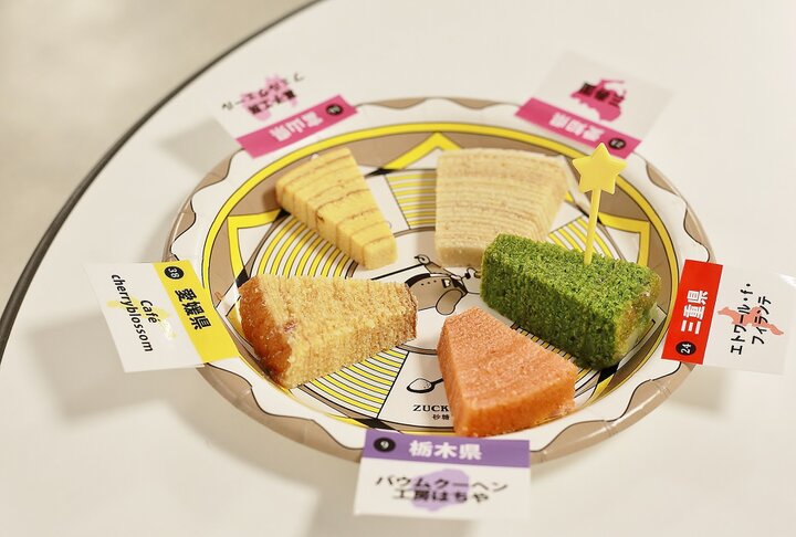 最後は全国各地のご当地バウムクーヘンがずらりと並んだコーナーへ。170ブランド、270種類以上のバウムクーヘンがエリアごとに並んでいます。食べ比べのプレートで美味しかったものを購入したいときはこちらで手に入れましょう。見ていると味も形もさまざなものがあることに驚かされます。
