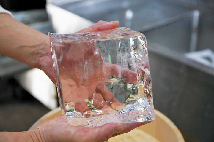 オーナーが独学で氷づくりから始めたかき氷。薄く削るため、密度の高い氷にする