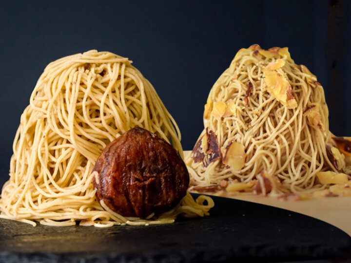 国内屈指の栗の名産地・高知県四万十川流域に店を構える<四万十ドラマ>。今年は高知県四万十川流域で収穫された「しまんと地栗」をはじめ、宮﨑県の「すき栗」、熊本県の「なごみ栗」をそれぞれモンブランに仕立てた「ジグリフレンズ モンブラン」が登場。和栗100%のペーストは、濃厚な栗の風味がありながら、優しい甘さに仕上がっています。 今年も店頭にて約1㎜の極細のペーストを絞りたてで提供されるため、ふわふわの食感に驚くはずです。3種の栗を食べ比べて、味の違いを楽しんで。