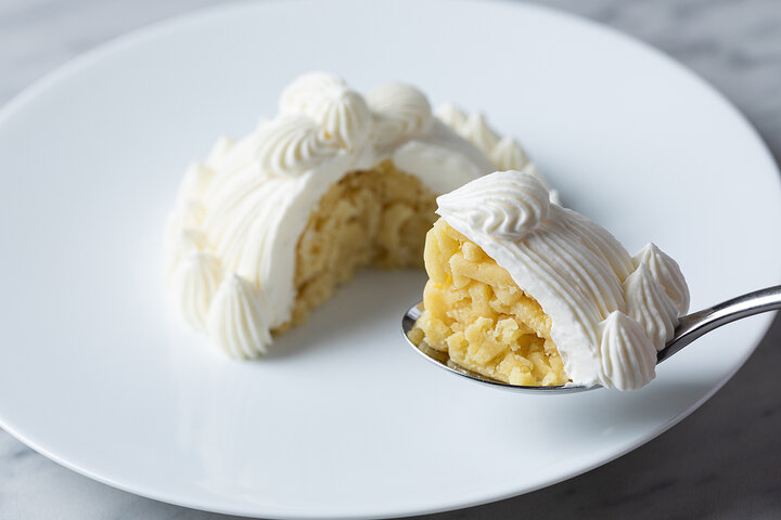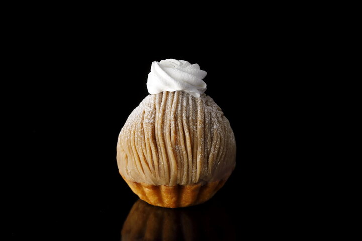 ベイクドチーズケーキとレアムースケーキ、フランボワーズのソースを重ねた土台に、無糖の生クリームとベリーサワークリームをあしらい、仕上げに花びらのような帯状のモンブランペーストをたっぷりと。 絞りたての帯状のモンブランは、しっかりと「栗」を感じることができる特別なモンブランに仕上げられています。