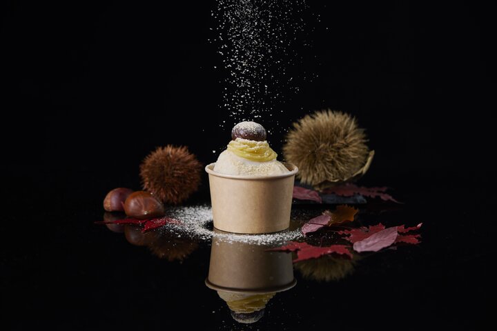 <QINA & Co.>の人気商品QINA THE ICE CREAMのベースとなる「きなこクリーム」に、このイベント限定として開発されたオリジナルの「マロンクリーム」と「特製栗餡」、「大粒のむき甘栗」を添え、仕上げには<QINA & Co.>オリジナルの二度焙煎きな粉をたっぷりと。 それぞれでも深い味わいが感じられ、混ぜていただくとさらなる至福のひと時を堪能できます。ジェラートときな粉のこの上ないハーモニーを味わって。