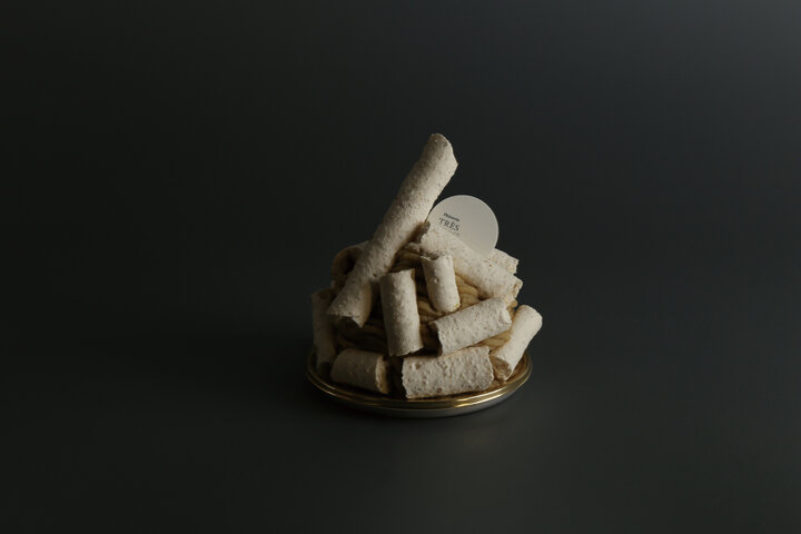 東京・文京区千石にある<トレカルム>は、<ホテル西洋銀座>など国内の名店や本場フランスで研鑽を積んだ、木村忠彦シェフが営む人気パティスリーです。 メレンゲ菓子をトッピングした斬新なデザインの定番「モンブラン」をアレンジした、今回初お目見えする「モンブラン・ジャポネ」。愛媛県産松山栗、黒糖、きな粉、クルミなどの素材を使って和風に仕上げられています。なめらかでしっとり、濃厚な口当たりを堪能して。