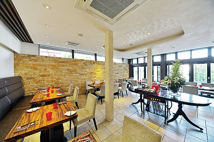 しっくいの壁が美しい南欧風の店内。個室もある