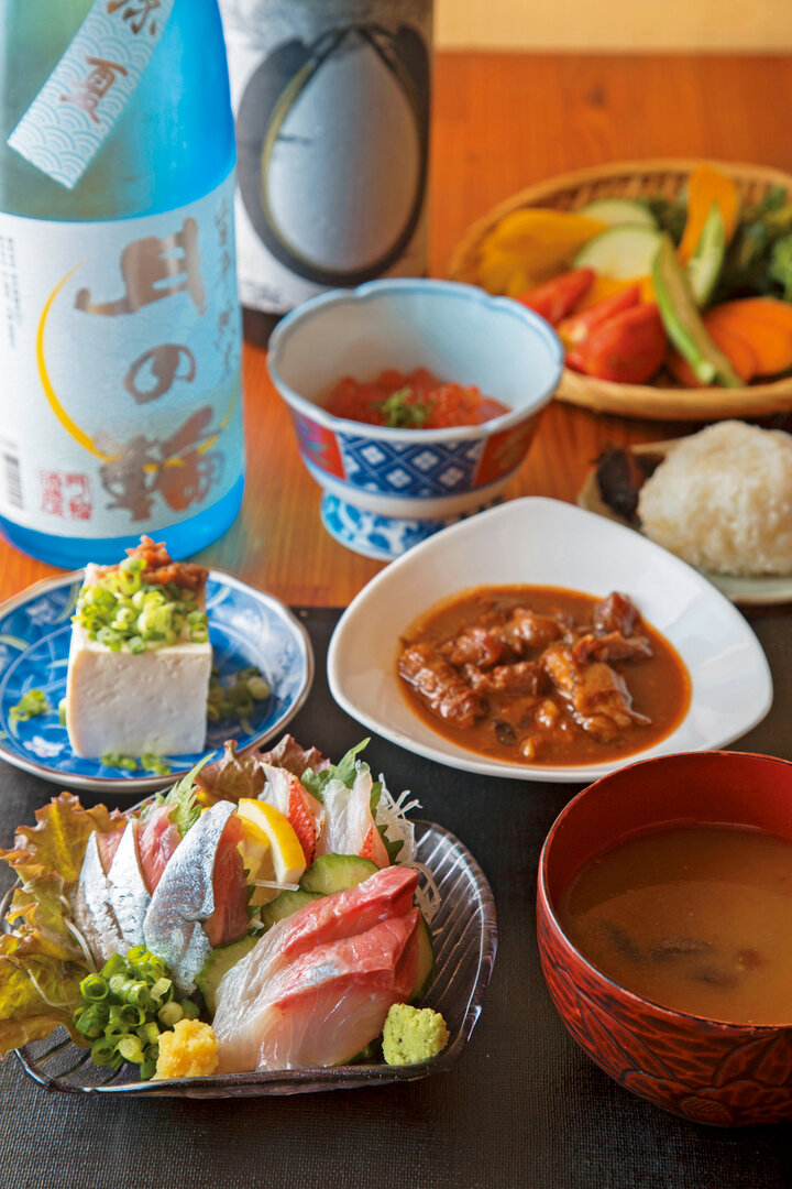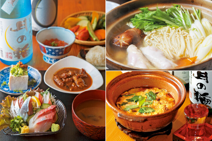 岩手県をはじめ、全国の銘酒をそろえる居酒屋。契約農家が育てる米や野菜、三陸の旬魚や佐助豚などの食材を生かしシンプルに調理。「おまかせコース」で、そのおいしさを堪能できます。 おすすめの地酒は、女性杜氏が造る辛口極上酒、月の輪一合680円。ふくよかな香りが評判です。