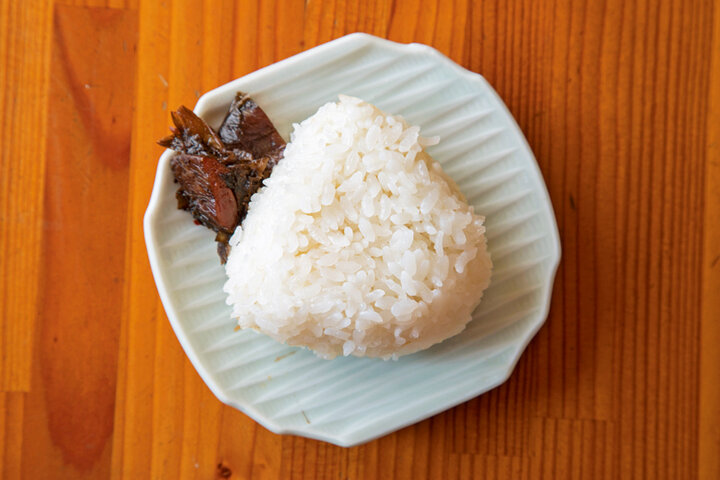 かまど炊きの米もおいしいと人気。コースの〆には塩むすびが出る
