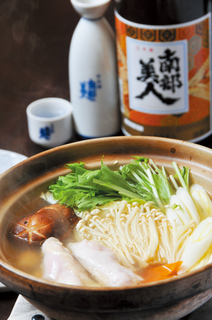 鶏肉はもちろんのこと、食器や炭まで岩手県産にこだわった鶏料理の専門店。主に使われている銘柄鶏は菜彩鶏。味が濃く大ぶりで旨みもたっぷり。野菜も一緒に食べられる水炊きは、特に女性に人気です。 おすすめの地酒は、南部美人上選1.5合748円。淡麗な味は鶏料理にぴったり。