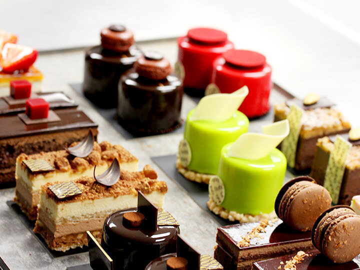 ミニケーキは3種類を用意。左からオペラ、ノワゼット、マッシーニ