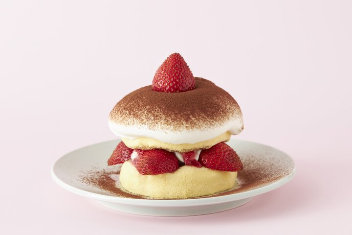 韓国「KISEKI PANCAKE STRAWBERRY & TIRAMISU/奇跡のパンケーキ ストロベリー&ティラミス」は、韓国カフェの定番スイーツ「ティラミス」とスフレパンケーキを同時に楽しむことができるハイブリッドスイーツです。 パンケーキ生地にビターなエスプレッソをたっぷりと染みこませ、軽い口当たりのマスカルポーネクリームにいちごをサンド。コーヒーのほろ苦さと、濃厚なフランス産チョコレートのマリアージュを楽しむことができます。