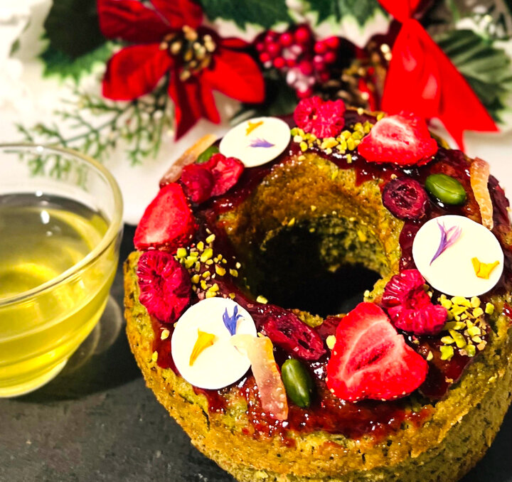 日本茶・衣類・日用雑貨など、ライフスタイルをトータルで提案するコンセプトショップ「Meiz Tea」。今回はスーパープレゼンター・松澤康之さんのご実家の茶舗「松澤園」とタッグを組み、新たなお茶の形を提案します。 華やかなクリスマスカラーがパッと映えるパウンドケーキ。さっぱりした抹茶入り玄米茶と一緒に味わってみては。