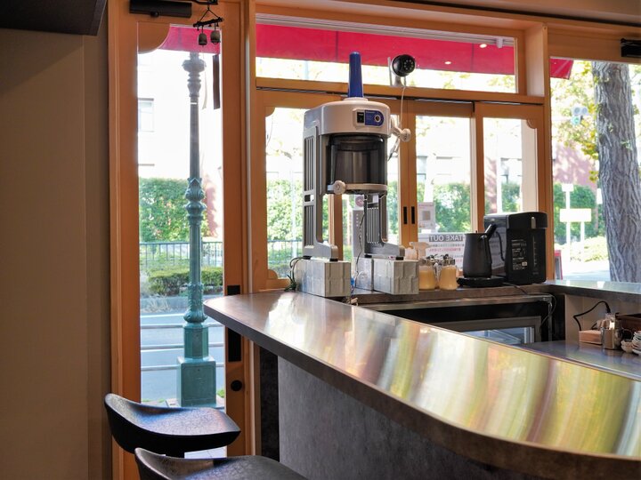大正時代に横浜生糸検査所として機能していたレトロなビルなど歴史的建造物が点在する馬車道にお店を構える「カモメ氷菓店」。南アルプスの天然氷を使ったかき氷の専門店で、ふわふわに削った氷に旬のフルーツでつくる濃厚シロップがトロリと絡むかき氷が年間を通して楽しめます。