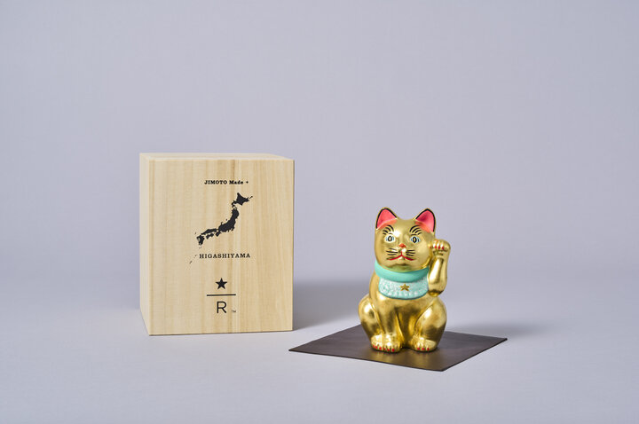 毎年、登場する招き猫を楽しみにされているファンも多い人気商品。今年の招き猫は、『JIMOTO Made + 東山 招き猫金』として、存在感のある本金箔貼りにしました。強い運を引き寄せることが出来そうな雰囲気を醸し出しています。 招き猫は商売繁盛の縁起物として言われ、招き猫の「右手を挙げると金運」を、「左手を挙げると人を招き、千客万来の御利益」があると言われています。